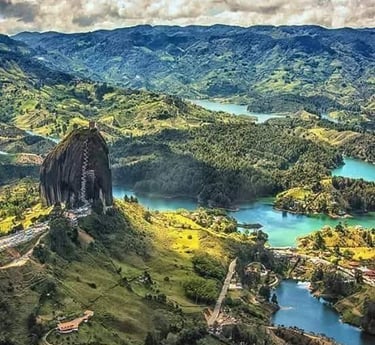 Descubre uno de los paisajes más emblemáticos de Antioquia, donde la Piedra del Peñol se eleva sobre un embalse lleno de islas y colores. Además, recorre las calles de Guatapé, famosas por sus vibrantes zócalos que cuentan la historia y tradición del pueblo.